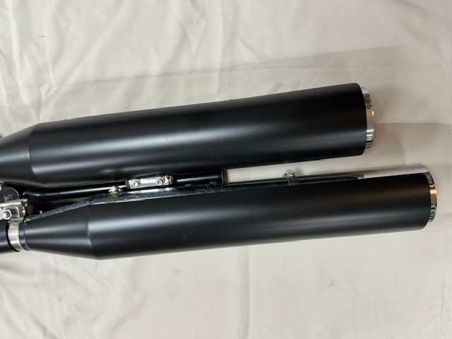 Origineel Uitlaatsysteem Harley-Davidson M8 Softail Street Bob FXBB(S) en Low Rider FXLRS (2018-2020). Onbeschadigd en compleet incl. bracket.