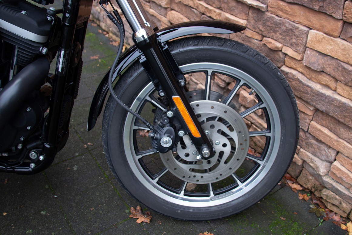 XL883R "Roadster" Frame mount models have a 2–1 exhaust, 13-spoke mags, black engine and are available in orange with 'R' graphics, rubber mounts get 2–2 exhaust, slightly different dualseat, wire wheel option and more 'R' colors, all have triple discs and rev-counter. In 2010, the XL883R officially gets the "Roadster" suffix